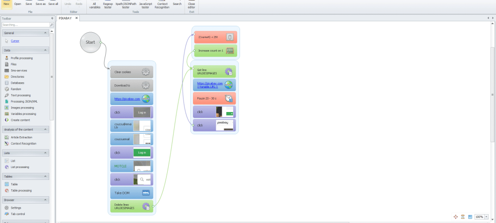 Afin de vous donner un ordre d’idée de ce qui peut être réalisé avec Zennoposter, voici un template qui vous permettra de télécharger automatiquement des images libres de droit (pour rappel, les images que vous trouvez sur Google ne sont pas libres de droit) pour un mot-clé donné.